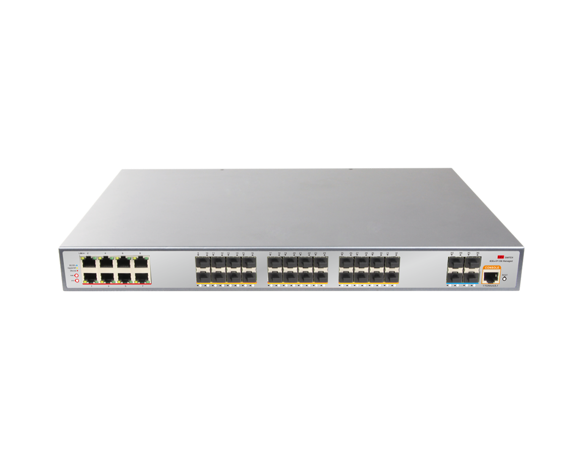 固定端口 | 8个10/100/1000Base-TX POE口(Data/Power) 24个1000M SFP独立光口 (Data) 4个10G SFP+ 上联光口 (Data) 1个Console RS232控制口(115200,N,8,1) | ||